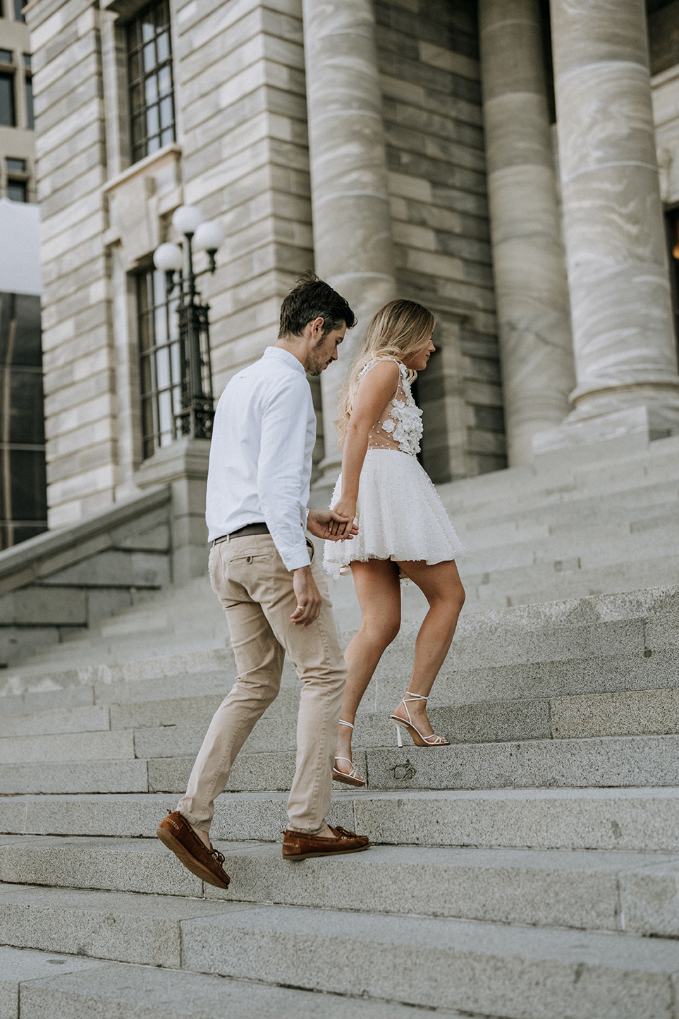 It was the perfect sunny afternoon wandering the city with these two. We found some gorgeous little pockets of light around Parliament Buildings and some fun and obscure parking buildings. I love an engagement session that allows you to adventure around known and unknown spots, finding surprise spaces and just seeing what the city has to offer up.